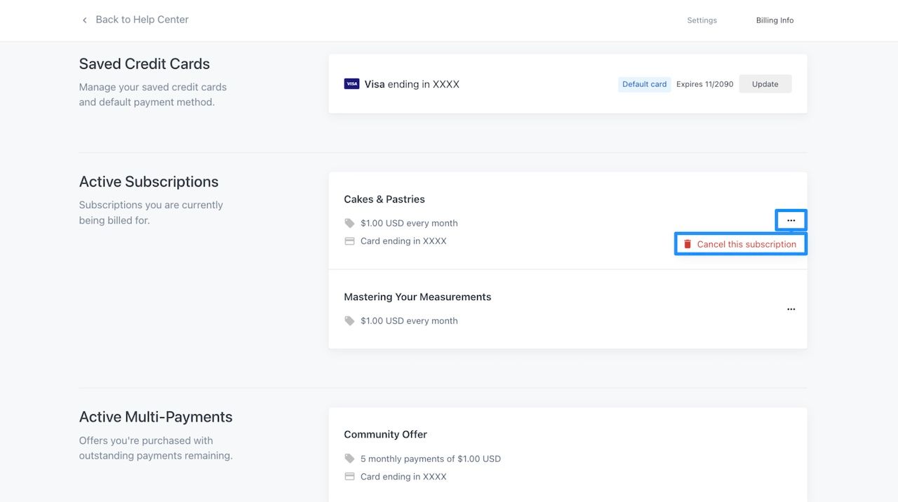 - Klicka på Cancel-knappen bredvid medlemskapet (se bild nedan)