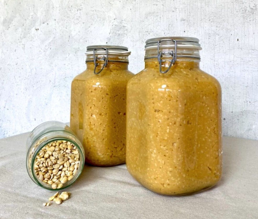 Detta är ett mathantverk efter ett traditionellt recept och som framställs genom fermentering av bönor och ris med hjälp av den naturliga mögelkulturen Aspergillus oryzae (koji).